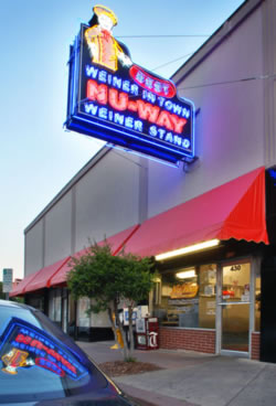 PS: Why the incorrect spelling as “weiner”? The old neon sign misspelled wiener. But at the high cost of the sign, the original Greek owners never changed it. Luckily, it survived the fire.