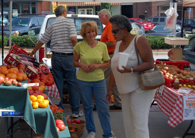 Many Gwinnett communities now present Farmers Markets for its residents. People like the idea of buying food fresh from a farm, along with other homemade products. Here’s a view of people enjoying the Suwanee Farmers Market, which is open from 8 a.m. until noon Saturdays through October 3.