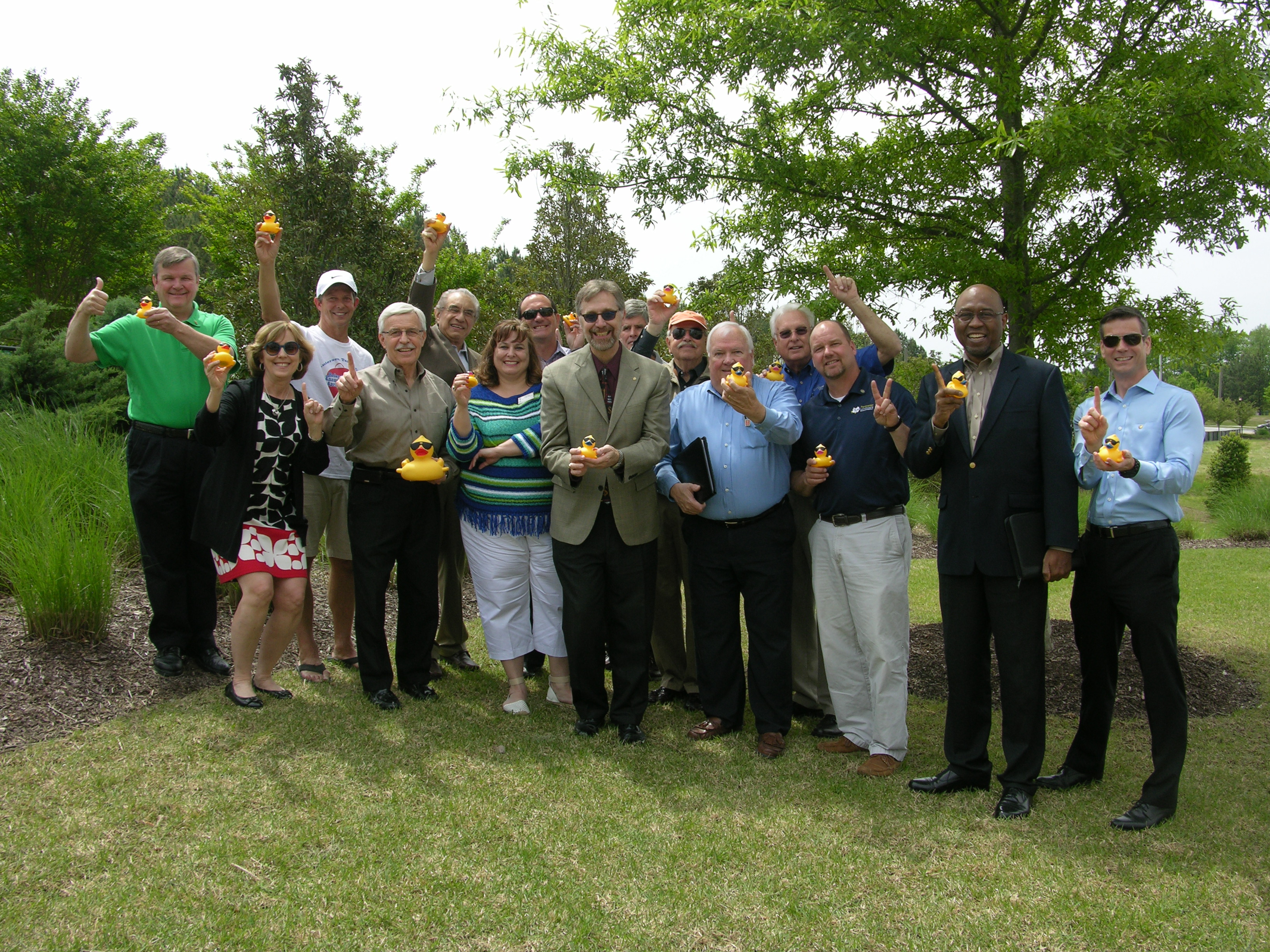 Members of the South Gwinnett Rotary Club are smiling as they each hold a miniature rubber duck that will eventually be part of a fund-raising project for the club’s Duck Derby to benefit youth of the area. (See story above). You have to wonder if that bigger duck might have an advantage over the other ducks. Or maybe that’s just the mother duck. To learn more about the race, visit www.gwinnettduckderby.