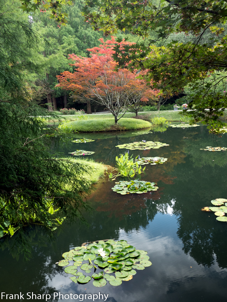 Here is a view of the water lily pond at Gibbs Gardens, with a brilliant Japanese maple tree in the background. The gardens are located at 1987 Gibbs Dr, Ball Ground. Gibbs Gardens admission charges include: Adults (18 to 64 years old): $20 per person; Seniors (65+): $18; children: (ages 6-17) $10; and (children 5 and under are free). Group rates are $16.00 per person for an unguided group of 10 or more. The group must arrive together.