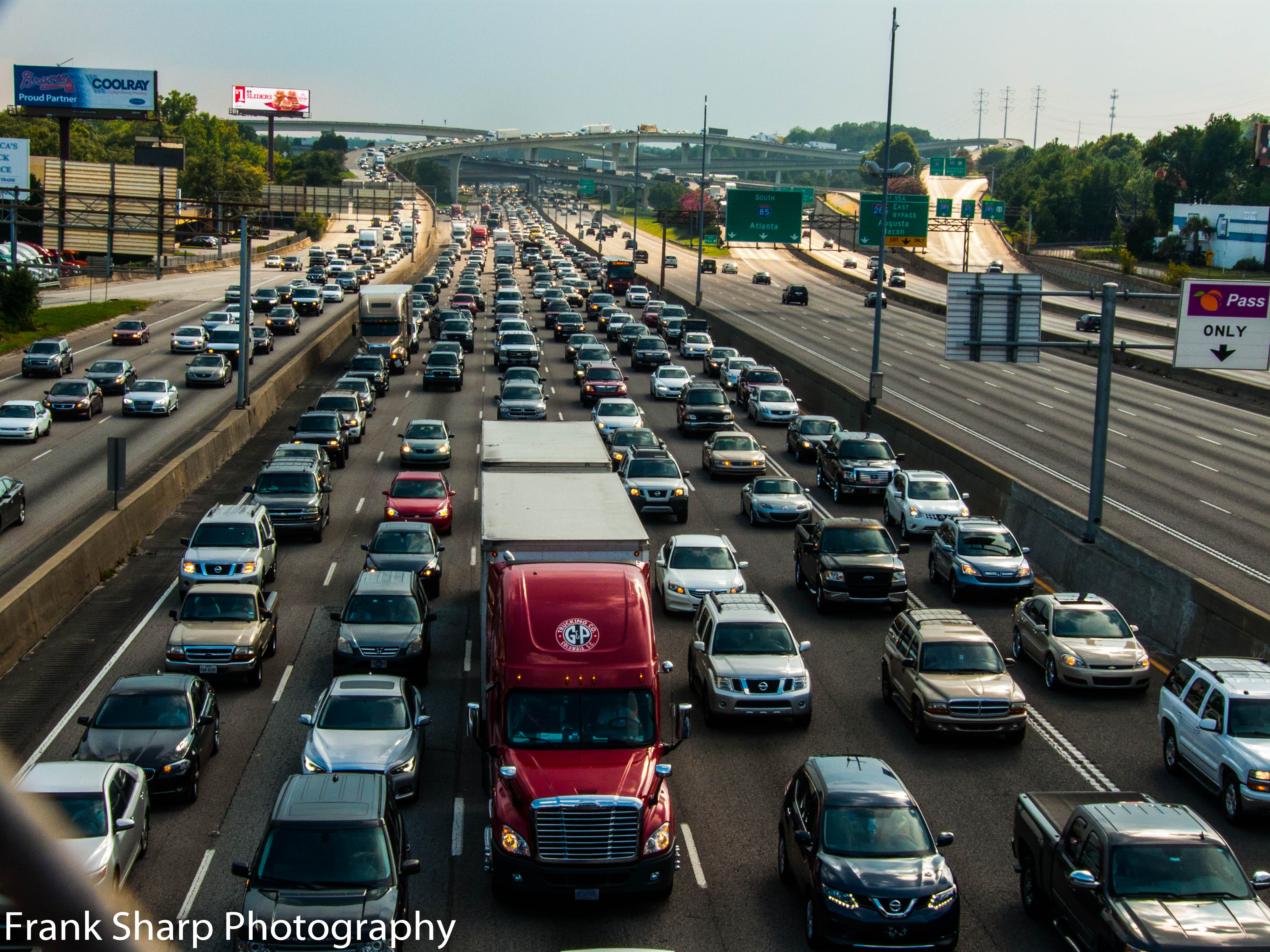 HO-HUM: Just another crowded day at Spaghetti Junction. Roving Photographer Frank Sharp says that he has been wanting to take photos of the vehicle activity at the intersection of Interstate 85 and 285, so visited the Northcrest Road Bridge to take this photograph. He says: “This is the best place to photograph, since there are no skyscrapers to block photographing in this area. This photo was made around 5 p.m. last Friday, as the highway north was crowded, but not so in the southbound lane. It was hard to shoot through the small holes in the wire fence. I had to take my lens hoods off so I could shoot through these holes.”