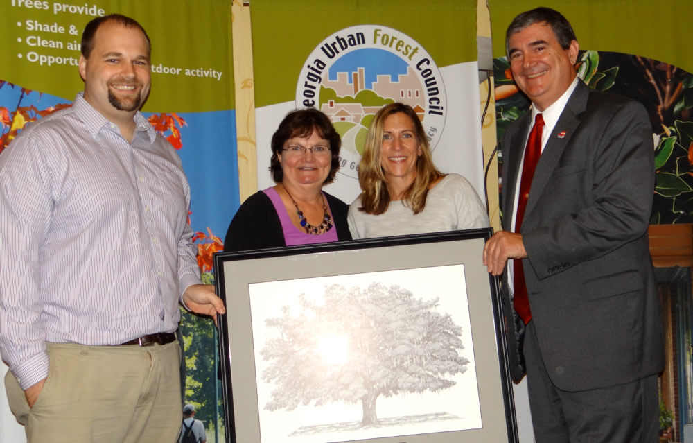 At the awards ceremony recently in Savannah were Andrew Saunders, president of the Georgia Urban Forest Council; Nancy Lovingood, certified arborist with Lovingood Consulting Services; Marcie Moore, Greenspace Planner with GCPR; and Robert Farris, director of the Georgia Forestry Commission.