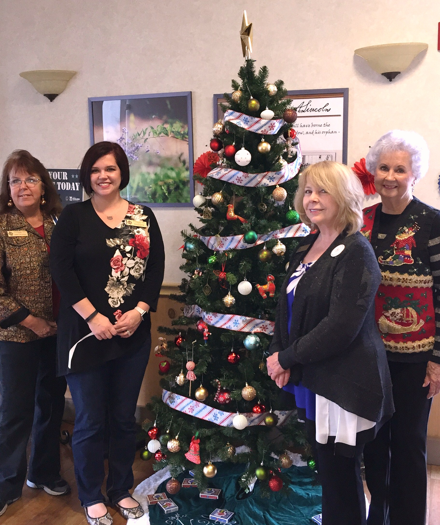 Recently Philadelphia Winn Chapter Daughters (DAR) and HODARs (husbands of DAR members) donated and decorated the Christmas Tree for the VA Clinic on Riverside Drive in Lawrenceville. Below from left are Anne Lockhart, Librarian Randi Minor, Second Vice Regent Ann Story and Past Regent Peggy Freeman.