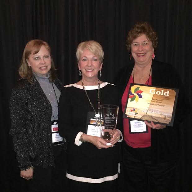 Holding awards from the Southeast Festivals and Events Association’s Kaleidoscope Awards program that the Duluth Fall Festival won recently are Alana Moss, Kay Montgomery and Annette McIntosh. Sugar Hill and Suwanee also won awards in this competition, which was featured in the last edition of GwinnettForum. Recent email technical difficulties delayed this photo from the last edition.