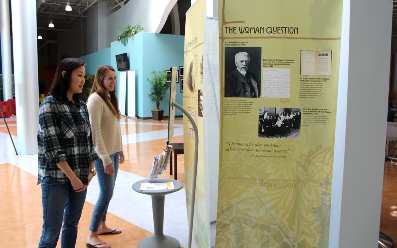 ON DISPLAY UNTIL APRIL 16 at the Georgia Campus of the Philadelphia College of Osteopathic Medicine (GA-PCOM) Library is a traveling exhibit from the U.S. National Library of Medicine. The Literature of Prescription: Charlotte Perkins Gilman and The Yellow Wall-Paper is a six-banner traveling exhibition that details the implications of Gilman’s short story first published in January 1892, and its significance in the social history of medicine. Georgia is one of just 11 states where the exhibit is traveling beyond the walls of the national library on the campus of the National Institutes of Health in Bethesda, Md. The display illustrates Gilman’s life and her ideas of gender and women’s rights, especially in relation to healthcare in the late nineteenth century. Skye Bickett, assistant director of Library Services, said, “We hope that PCOM students, as future healthcare providers, see this exhibit as an example of the importance of respecting the patient’s beliefs, values and lifestyle during the course of care. For instance, the stigma surrounding postpartum depression, from which the author may have suffered, keeps many women from discussing their concerns with family and physicians.”