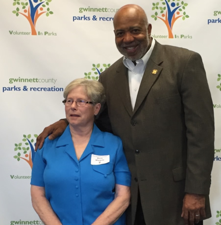 Gwinnett County Parks and Recreation (GCPR) held a Volunteer Reception on March 12 to recognize the valuable contributions of the volunteers who have dedicated their time to GCPR in 2015. GCPR presented 121 volunteers with the Presidential Volunteer Service Award, including 76 Bronze, 23 Silver and 22 Gold recognitions. The Silver Star Award was presented to Doris Warpole of Norcross for serving more than 2,200 hours. She accepted the award from State Rep. Dewey McClain, who is on the Gwinnett Parks Foundation.
