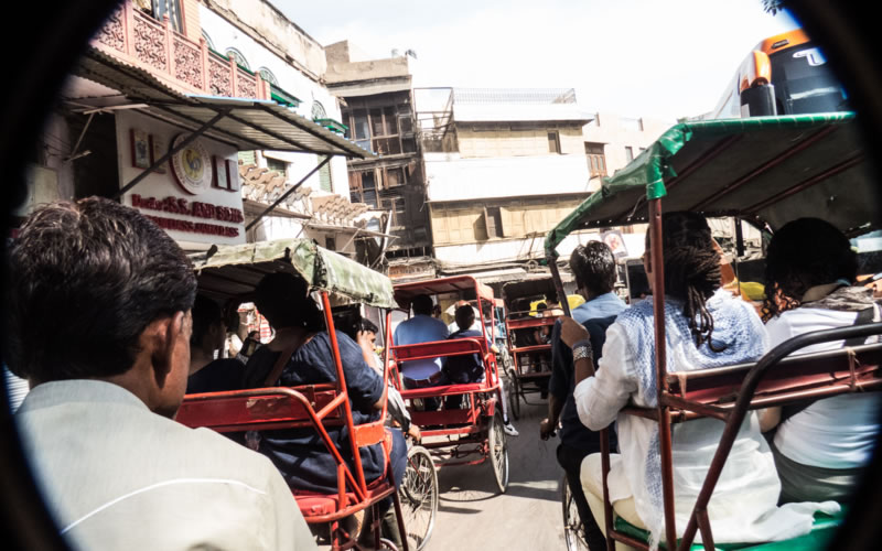 Next stop was the Gate of India, patterned after the famous Arc de Triomphe in Paris. There was heavy security and a few sleeping dogs in the street. Then our group took the rickshaw ride in Old Delhi. It was a bumpy ride because of the many potholes in the street. We saw a few monkeys playing on the roofs of buildings.