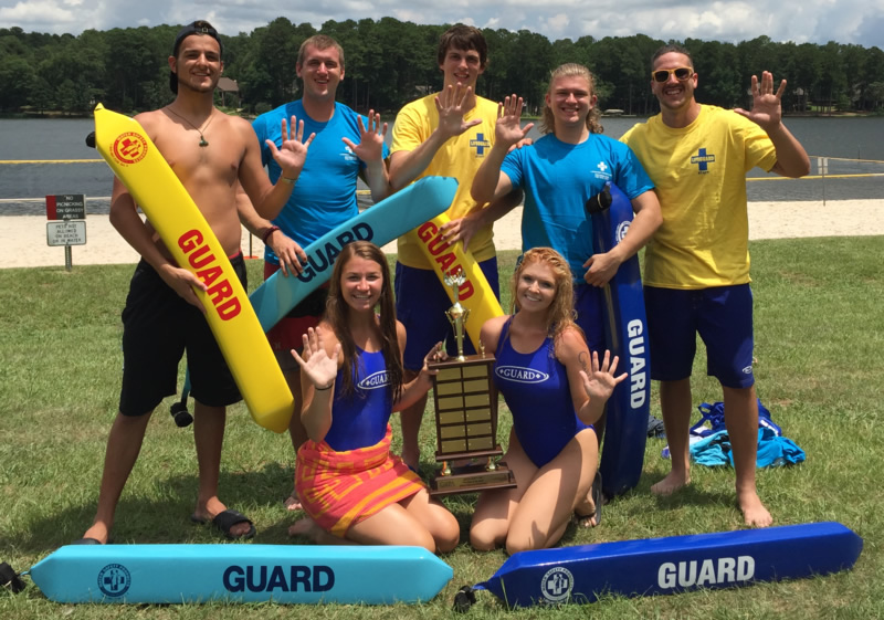 WINNERS AGAIN: For the fifth year in a row, Gwinnett County Parks and Recreation (GCPR) wins first place at the annual Georgia Recreation and Park Association State Lifeguarding Competition, held at Lake Oconee in Greene County on July 18. Those participating came from several different aquatics facilities throughout Gwinnett County. From left are, back row, Daniel Lammons, Brad Miller, Philip Jenny, Jordan Rubin and Arthur Bedard. On the front row are Reagan Balog and Holly Smith. All are seasoned veterans of lifeguarding who have participated in the state competition in prior years. Jordan Rubin is a college student, working summers as a pool manager at Rhodes Jordan Park Pool in Lawrenceville. Holly Smith is a pool manager at Dacula Park Pool. Daniel Lammons and Reagan Balog, both upcoming freshman in college, work summers at Collins Hill Park Aquatic Center alongside Brad Miller and Philip Jenny. The team took first in the written exam, CPR, triathlon and rescue events, second in the swim relay and rescue paddle board event. The team was coached by Arthur Bedard from Mountain Park Aquatic Center.