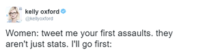 “Women, tweet me your first assaults. They aren’t just stats. I’ll go first. Old man on city bus grabs my (genitals) and smiles at me. I’m 12.”