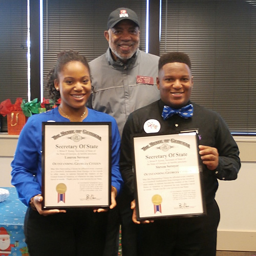 Two Gwinnett County teens were honored for going above and beyond in their dedication to the well-being of the state. Lauren and Steven Grant Seroyer were presented with the Outstanding Georgia Citizens Award by District 100 State House Representative Dewey McClain, shown in back. The twins attend Peachtree Ridge High School and have created the C.A.R.E (Community Assistance Resource Effort) Closet after a conversation with a classmate who was hungry and had no access to food at home. The C.A.R.E Closet is a confidential school-based food pantry sponsored by various high school clubs, local businesses and non-profit organizations to provide their peers and community members with a basic need that is essential for their academic success. With the success of the C.A.R.E Closet, Lauren is one of two Spark Award recipients from the local chapter of the United Way. The organization was awarded $25,000 to help launch this program in other schools in Gwinnett County. Rep. McClain says: “I am very proud of the accomplishments of the twins, they are role models and citizens we like to have in our community.