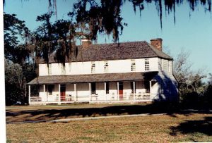 George gave more detail: “House at Middleburg Plantation on the Cooper River near Huger, Berkeley County, S.C. According to nationalregister.sc.gov, Middleburg was erected about 1699 and retains the medieval plan of a one-room thickness, and also the exposed post and girt construction of the seventeenth century. Middleburg’s plan of a single file of rooms, also forecasts the basic plan of Charleston’s Georgian ‘single house’ of the 18th century, and is similar to the common 19th century vernacular I-House type found across South Carolina. The plantation house has two outbuildings, a commissary and a frame carriage house. Middleburg was designated a National Historic Landmark on April 15, 1970.”
