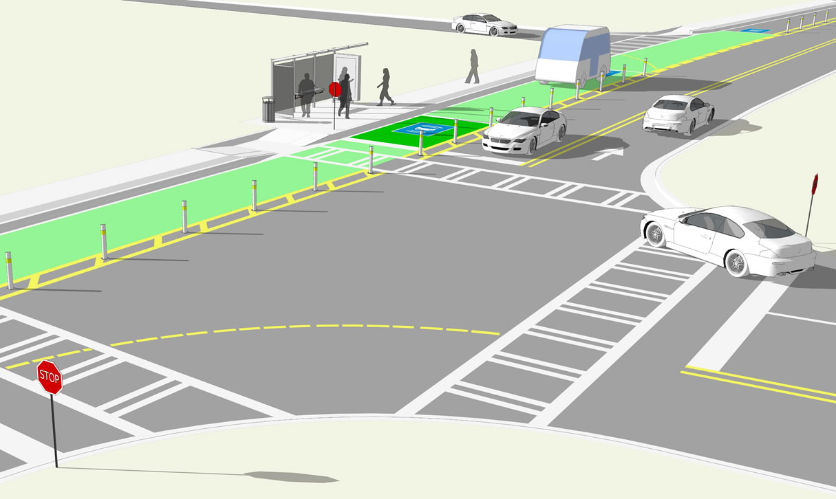 The 1.4-mile segment of Technology Parkway will be retrofitted to accommodate one dedicated lane for a driverless vehicle, plus one lane each way for passenger vehicles. The driverless vehicle will stop at specified location.