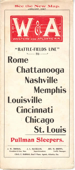 In 1890, this lease expired and the W&A was leased to the Nashville, Chattanooga & St. Louis Railway, the W&A’s primary connection at Chattanooga. The W&A has remained in the hands of the NC&StL and its successor companies, first the Louisville & Nashville Railroad and now CSX Transportation, since that time.