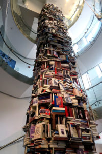 Others getting it included Fran Worrall, Lawrenceville, Neal Davies, Decatur; Susan McBrayer, Sugar Hill; Bob Foreman, Grayson; Ruthie Lachman Paul, Norcross; and Emmett Clower, Snellville; of course Allan Peel of San Antonio, Tex.; and George Graf of Palmyra, Va., who wrote: “The exhibit designers printed the cover art directly onto the metal book ‘jackets.’ The tower features 205 real titles, most of which are currently in print. To get permissions, more than 50 publishers were contacted.