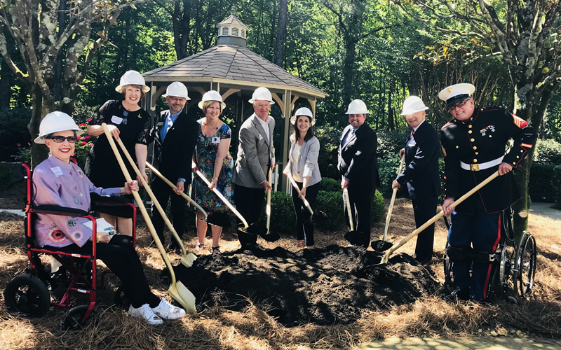 Peachtree Christian Health stakeholders proudly turn the dirt to ceremonially launch their $3M renovation and expansion project. From left to right: Martha Todd, president emeritus; President Anne Mancini; Chris McGahee and Teresa Lynn, City of Duluth; Monty Watson, Piedmont Bank; Luisa Mazzei, Foresite Group; the Rev. Jarrod Longbons, Peachtree Christian Church; Board Chairman Scot J. Kirkpatrick; and Sgt. Dennis Walters, U.S. Marine Corps.