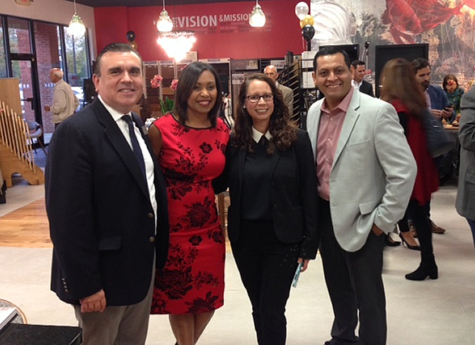 NEW OFFICE: Moving their business, CIC Floors, across Interstate 85 to their new location at 5260  Peachtree Industrial Boulevard in Peachtree Corners, are Clara and Cesar Olquin, second and fourth from the left. They are shown with  Karen Malaga and Antonio Bario from ACE at the opening of the new location recently. The company has been in business for 16 years, and offers a full range of flooring services, from design to final installation.