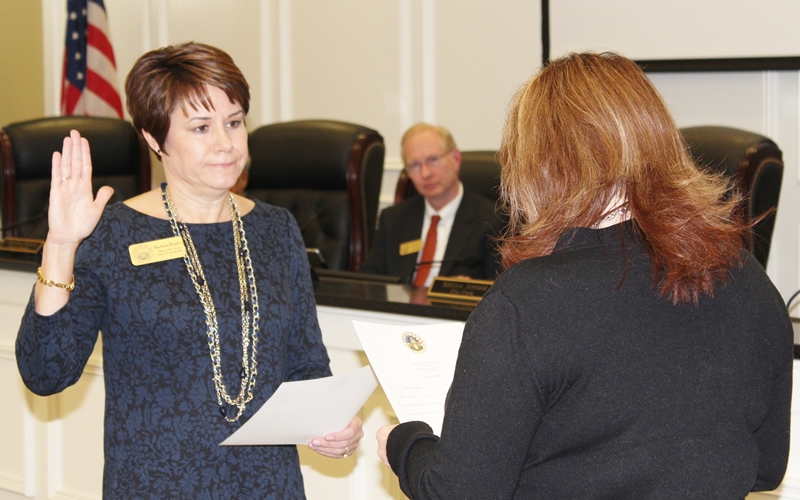 Barbara Bender has been appointed Snellville’s mayor after the resignation of Tom Witts. Because Bender had to resign her council seat to take the mayor’s post, there will be a special election March 19 to fill that seat. Qualifying for the Post 5 seat will take place Jan. 22-24 in City Hall. Bender, a CPA in private practice in Lawrenceville, served on the city council for six years from 2005 – 2011 and was elected again November 2013. Bender and other council members and members of the community praised Witts for his contributions to the city before he resigned. “I would like to thank Mayor Tom Witts for his work and his efforts here in the city. He really did do a phenomenal job as councilmember and as mayor. Keep Tom and Carol Witts both in your thoughts and prayers as he’s still undergoing chemo treatment for his colon cancer and his wife just had surgery for her bladder cancer on Friday.” The new mayor was sworn in by City Clerk Melisa Arnold.