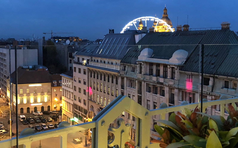 Allan Peel, San Antonio, Tex.: Today’s mystery photo is of the upscale St. Andrea Wine and Skybar in Budapest, Hungary. The photo was taken facing north-east towards the Budapest Eye Ferris wheel in Erzsébet Square and St. Stephen’s Basilica, both of which are visible in the photo. Opened in 2017 and located just off the banks of Danube river, St. Andrea Wine and Skybar is a gourmet cocktail bar that towers over Vörösmarty Square in the heart of the city. It is definitely an upscale hangout, where the target audience can enjoy the high life enhanced with sophisticated entertainment, gourmet experiences, and far-reaching vistas.”