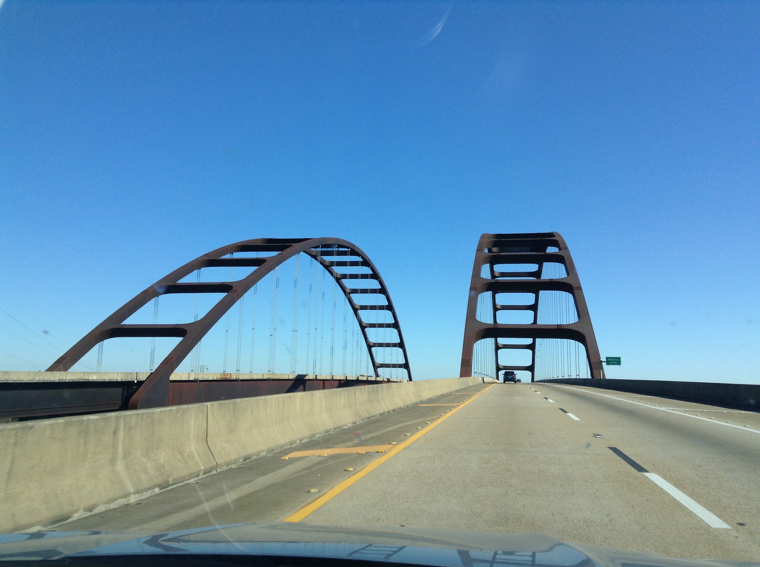 Alan Peel, San Antonio, Tex., writes: “The photo was taken from the car as it heads North on I-65, just before Mobile River, about 18-miles North-East of Mobile, Ala. I recognized it as I have travelled over it many times as I drove between Atlanta and my new home in San Antonio. It is certainly an impressive bridge as you approach it, so I can appreciate why the driver/passenger took the time to photograph it while driving on it on I-65.”