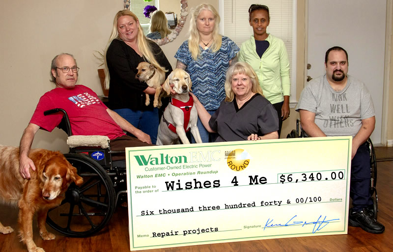 ROUND UP GRANT: Lynn Robinette, front center, president of Wishes 4 Me Foundation, seeks to provide as normal a life as possible to those dealing with a disability. The residents and staff pictured with her will greatly benefit from a recent Walton EMC Operation Round Up grant.