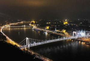 Allan Peel, San Antonio, Tex.: came through with: “The photo was shot facing north from the elevated position of the Citadella, which is located on the top of Gellért Hill. The Szechenyi Chain Bridge is a two-lane chain suspension bridge that is 1,230-feet long and spans the Danube between the inner-city parishes of Buda and Pest, which are the western and eastern sides of Budapest. This bridge was completed in 1849. In contrast, the Elisabeth Bridge is a 6-lane, 1,250-foot long suspension bridge that was completed in 1964.