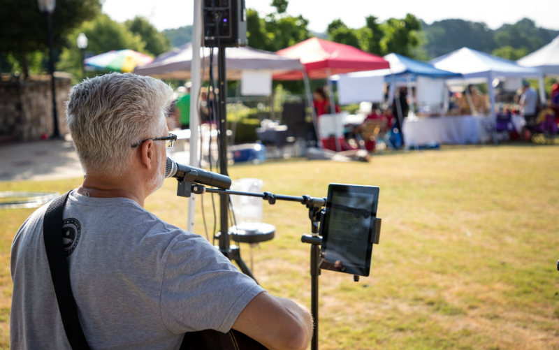 Starting at 5 p.m., activities will begin to enliven South Peachtree Street. A free kids’ yoga class sponsored by Studio 87 Yoga will start at 5 p.m. on the festival stage and there will also be a kids’ art activity with Ms. Rosa from The O Gallery. Artists from the Kudzu Art Zone will demonstrate how to paint “en plein air.” There will be live music throughout the night.