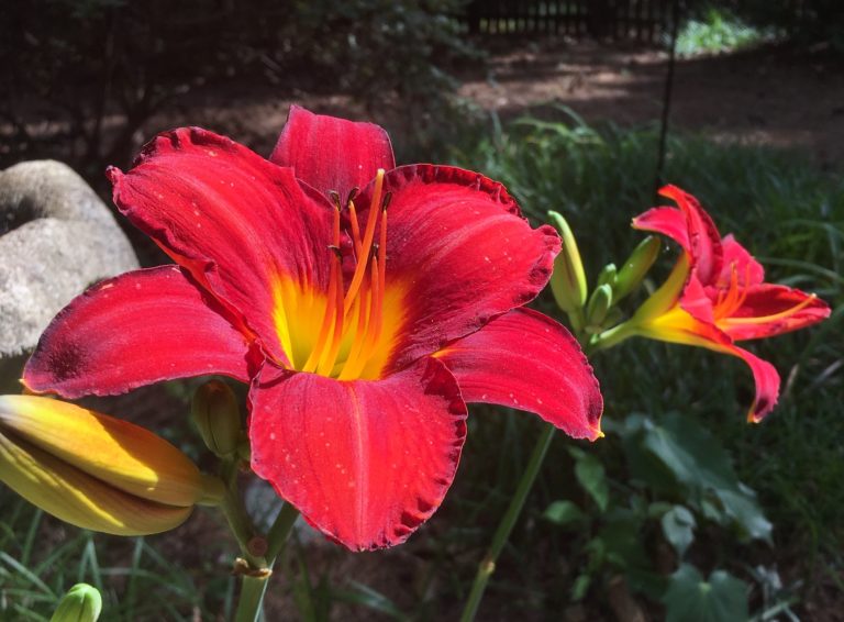 A RED BEAUTY! Sometimes nature exceeds itself with a particularly handsome outbreak of beauty. While we see daylilies in many orange and yellow blooms all around, this stalk produced a beautiful red bloom. Isn’t it gorgeous?