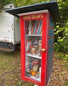 With public libraries closed during these COVID-19 times, Little Free Libraries offer good reading material. However, this library in Savannah now offers other assistance…..food during this pandemic. The photograph came from Mickey Merkle of Berkeley Lake. Do your part. Visit the Little Free Library for a book, or take one to leave there for the next person.