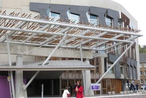 Allan Peel of San Antonio, Tex. contributed:Today’s mystery photo is of the Scottish Parliament Building. Sitting at the foot of Edinburgh’s famous Royal Mile, Scotland’s Parliament Building and associated campus complex is the home of the Parliament’s 129 members and approximately 1,000 staff.  Constructed from a mixture of steel, oak, granite, and crumbled stone, the complex was hailed on opening day as one of the most ‘innovative’ designs in Britain at the time. Innovative perhaps; but while Edinburgh is home to many beautiful and ancient buildings, the Scottish Parliament Building is certainly not one of them. Some of the principal features of the complex include leaf-shaped buildings, a grass-roofed branch merging into adjacent parkland and wire-framed walls filled with the broken stones of previous buildings from the area.