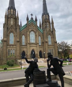 Susan McBrayer of Sugar Hill early on recognized last week’s Mystery Photo, which was sent in by Robert Foreman of Grayson. “This bronze statue is of two ‘Fathers of Confederation’ having a conversation about creating the nation of Canada. It’s located just outside the doors of The Great George Hotel that is across the street from St. Dunstan’s Basilica (seen in the photo). The two Fathers had the same full name but were not related: John Hamilton Gray, the former premier of Prince Edward Island, and John Hamilton Gray, a politician from the province of New Brunswick. The statue, unveiled in 2014, commemorates the 150th anniversary of the 1864 Charlottetown Conference, the first of three meetings that led to Confederation. St. Dunstan’s Basilica is the Cathedral of the Diocese of Charlottetown on Prince Edward Island. It is named for St. Dunstan, an Anglo Saxon saint from Glastonbury, UK. (I have never been to PEI, but I have been to Glastonbury.)”