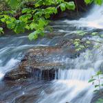 Rabun County, in northeast Georgia, is the state’s most prolific waterfall location. The abrupt change in elevation, combined with several large, plateau-like drainage areas, makes the area ripe for waterfalls. Wet-weather falls, such as Ada-Hi Falls at Black Rock Mountain State Park, occur where drainages are small. Waterfalls located in northwest Georgia also are of the wet-weather variety. Often the falls on Johns Mountain (Keown Falls), near Villanow in Walker County, are just a trickle or are completely dry. However, colorful mosses and algae cover the perpetually moist rock.