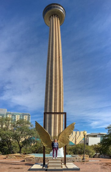 Graf wrote: “This is the Tower of the Americas in the background and Alas de México (Wings of Mexico) in the foreground, in San Antonio Texas. The Wings of Mexico bronze sculpture was gifted by Mexico City to San Antonio to celebrate the city’s tricentennial. Located in downtown San Antonio, the 750-foot-tall Tower of the Americas provides the most spectacular view of the city. The tower offers a gorgeous panorama from the revolving Chart House Restaurant, terrific scenery from the Observation Deck and a chance to experience the thrilling 4D Theater Ride.”