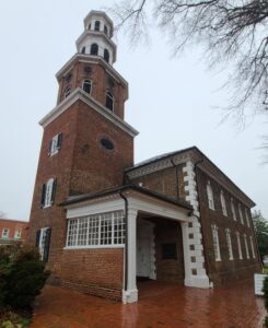 “Today’s mystery photo is of an Episcopal church, Christ Church, located in the Alexandria, Va. historic district known as the ‘Old Town.’ It was built between 1767 and 1773. This is really the back of the church. The entrance is on the other side of the building. Because it was originally built on the outskirts of Alexandria, the church was often referred to by locals as ‘The Church in the Woods.’ It was more formally called the Fairfax Church until it was renamed to Christ Church in 1816. This church is one of few that could boost that ‘George Washington worshiped here.’ After the church was completed, George Washington was one of its original parishioners, and he purchased a box pew that visitors can sit in today. Its interior was spared the ravages of the Civil War. Because of George Washington’s affiliation with the church, the Union troops held and protected the church during the war, and as a result, much of the interior was spared.”