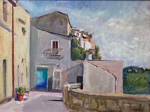 - Joyce English continues to paint from a variety of observations. The painting “The Turquoise Door” was inspired by a trip to Sicily; the brightly -colored door stood out amidst all the subtle tones of surrounding buildings.