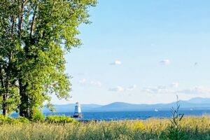 “In 1857, two wooden lighthouses were initially constructed on the ends of the breakwater to mark the harbor entrances. Neither lighthouse lasted very long and new lighthouses were needed. In 1890, two stronger lighthouses were placed at either end of the detached breakwater. Both towers stood for over 100 years until they were replaced in 2003. The Burlington Breakwater North Light is 35-feet high with a range of 7-nautical miles flashing every 2.5 seconds.”