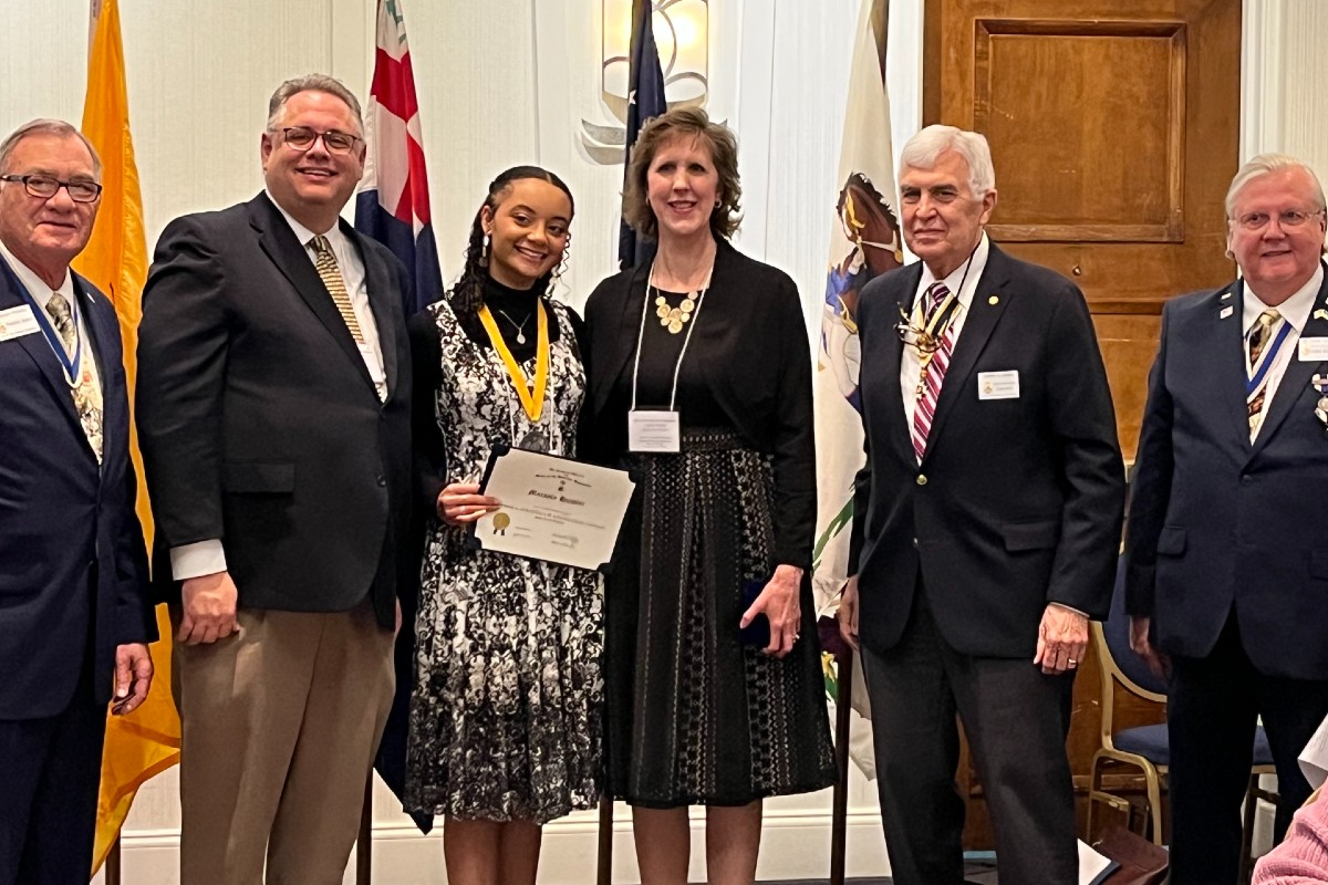 LOCAL AND STATE HONORS: An 11th grade home-school has won the local and statewide Knight History Essay Contest sponsored by the Button Gwinnett Chapter, Sons of the American Revolution (SAR) in Lawrenceville. She is Macayla Hutsler of Bethlehem, in the center.  Following the presentation of a certificate and a monetary award, Ms. Hutsler was notified that her entry had also won the state award. Her essay will now be submitted for consideration in the National Society SAR essay contest. Her essay was  “Caesar Rodney:  A Patriot Worth Remembering.” This Delaware patriot’s tie-breaking vote made the Declaration of Independence unanimous after Pennsylvania and South Carolina also voted in favor of independence. From left are NSSAR President General Bruce Picket; Eric Hutsler, father; Macayla Hutsler; Leslie Hutsler, mother; GASSAR Committee Chair of Knight Essay Terry Gibbs; and GASSAR State President Dr. David Ludley. Her essay won her $100 locally and $550 from the state honors.