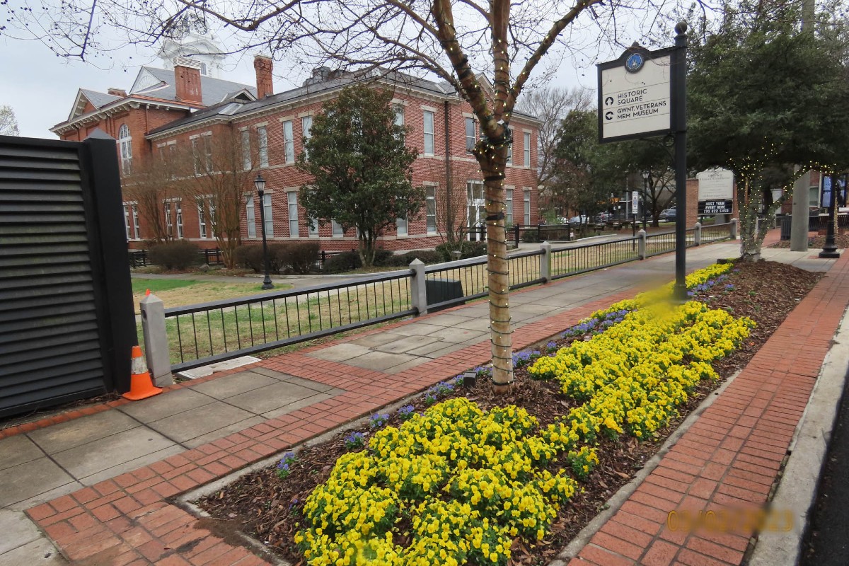MORE COLORFUL BEAUTY: The bright yellow pansies highlight what Roving Photographer Frank Sharp found at the Historic Gwinnett Courthouse in Lawrenceville. More warm weather is on the way this week though showers are expected to keep these pansies and flora all over Gwinnett in colorful blooms for the next few weeks,
