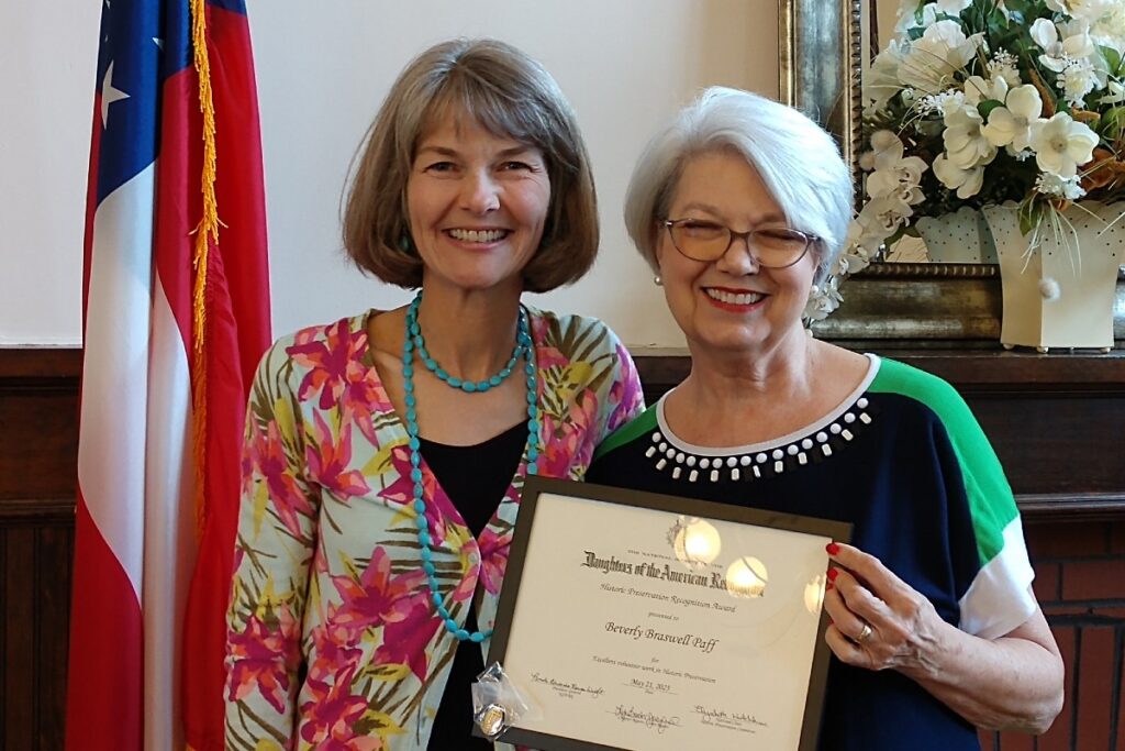 Beverly Paff was awarded the Historic Preservation Recognition Award. She is a past president of the Gwinnett Historical Society and member of the Fort Daniel Foundation. The preservation of the Fort Daniel site and the Elisha Winn House, as well as the creation of the Friends of Fort Daniel, are just a few projects that she has been involved with.