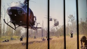 Ruthy Lachman Paul, Norcross, was dead-on in spotting the last mystery photo. She says: “Today’s mystery photo is a ‘photo of a photo’ and was shot at the Atlanta History Center in Atlanta. The subject of the mystery photo is a dramatic, wall-sized, multi-pane version of an original photo taken c.1969 by 1st Lt. James H. Holcombe Jr (1947 – present), a Tucker resident and photographer who was based at the Bien Hoa Air Base in South Vietnam, approximately 16-miles northeast of Ho Chi Minh City (formerly known as Saigon). The enlarged photo depicts a swarm of Huey helicopters as they approach a grassy field landing zone in South Vietnam. The photo is one of 43 historic photos (17 of which were created by James H. Holcombe Jr) that are part of the History Center’s exhibit “More Than Self: Living the Vietnam War.” The exhibit first opened to the public in November 2017, and is a detailed, historical look of the Vietnam War through the eyes of Atlantans who lived through it.” The photo was made by Ricky Krause of Lilburn.