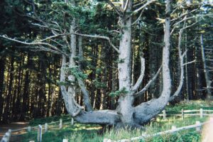 The curiously-shaped tree that was the recent Mystery photo was first spotted by Jay Altman of Columbia, S.C. He wrote that it was the “The Octopus Tree, Cape Meares State Scenic Viewpoint, Tillamook, Oregon,” then added: “With no central trunk and several thick limbs that stick straight up into the air, the so-called ‘Octopus Tree’ at Cape Meares is a natural wonder. The old Sitka spruce is about 105 feet tall and more than 46 feet in circumference, with each limb between three and five feet thick. It’s estimated to be between 250 and 300 years old, though nobody seems to know how or why the tree grew up that way.”