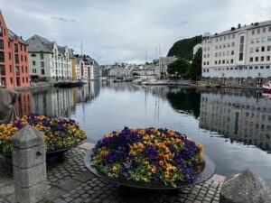 Peel wrote: “Today’s mystery photo was shot in the sea-port town of Ålesund, Norway on the outer island of Aspøya, approximately 230-miles northwest of Oslo. Ålesund is the gateway town to the spectacular Geirangerfjord, otherwise known as ‘the crown jewel of the Norwegian fjords.’ The town is noted for its concentration of Art Nouveau architecture, which is evident in today’s mystery photo. In fact, the photo was taken within walking distance (less than 600-feet) of the Stornespiren/Prestebrygga Cruise Pier from where the cruise ships dock to allow passengers to disembark and visit the town of Ålesund.”