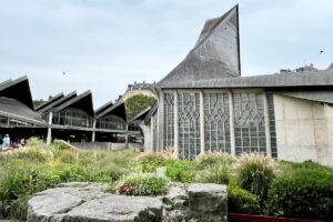 Allen Peel of San Antonio, Tex. recognized the last  mystery photo.  He wrote: “It is of the Church of Saint Joan of Arc, located in the center of Place du Vieux-Marché, an ancient market square in the city center of Rouen, France. Contrary to the typically medieval, Gothic-style churches and cathedrals that the city is famous for, the Saint Joan of Arc church is a rather wacky and spiky-looking memorial church designed and built by architect Louis Arretche (1905–1991).