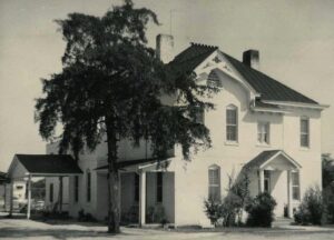 Allan Peel of San Antonio, Tex. gave added information : “The photo was taken in 1953 facing South Perry Street at Luckie Street, near where the Gwinnett Bicentennial Plaza is currently located. According to the Gwinnett Daily Post, the county sheriff and his family would normally live in the jailhouse at the same time as it was used to detain prisoners. Sheriff Crawford Pittard and his family occupied the building during his tenure as sheriff between 1953 and 1960. They used three rooms on the ground level, as a kitchen, dining room, and living room, while male prisoners were kept on the second floor. The Pittard family also had a bedroom on the second floor, behind which were two women’s cells.  The basement had a broiler room that was used to store contraband, such as liquor and slot machines. The jail was demolished in 1978.”
