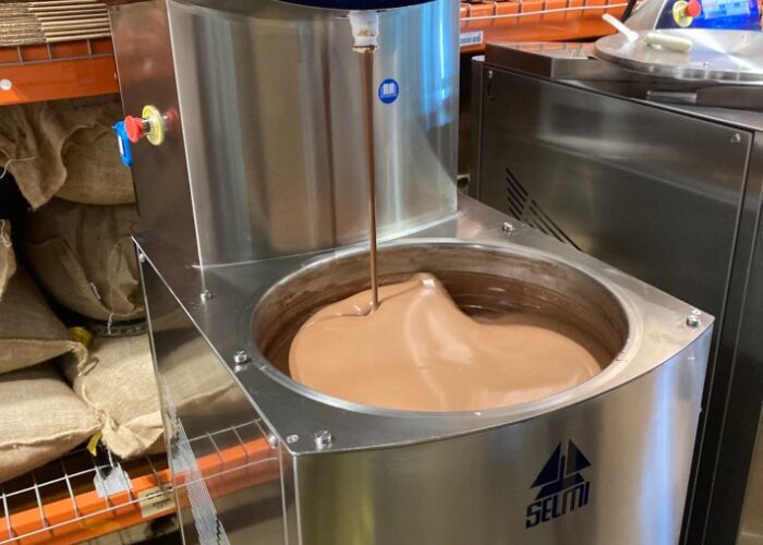 Bitzel empties the raw beans, from his own farms in Ecuador and Uganda, into special machinery, and starts roasting. Processing the product finer and finer in 36 hours, it becomes high-class chocolate. There is constant checking to ensure high quality. “That’s why we have no sprinkler system in our building, for just a few drops of water could destroy lots of dollars of chocolate.”