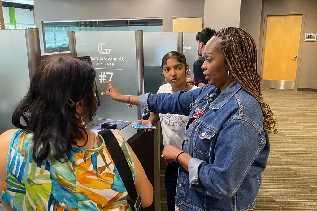 Eveeta Perumal wanted to make sure her finances were in order before starting her first year in college. The 19-year-old from Loganville, along with her mother, visited Georgia Gwinnett College’s (GGC) Financial Aid office where they were greeted by Latasha Dillar. She walked the pair through the financial aid process. Dillard, who works full-time during the school year counseling 10th grade students at Discovery High School, is spending the summer at GGC helping students like Perumal transition to college.