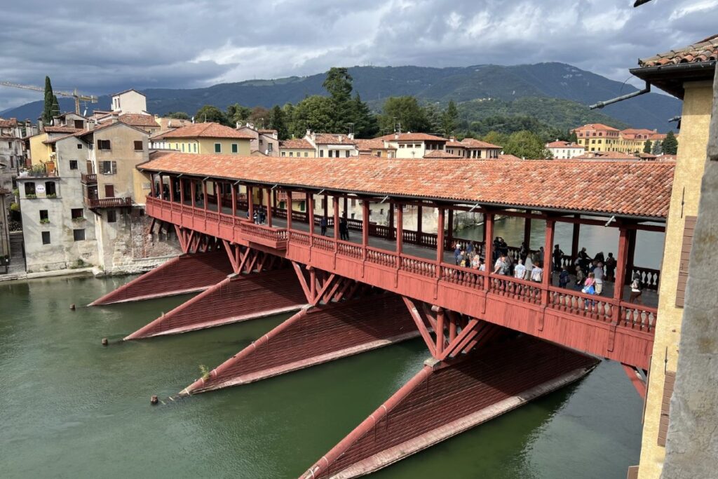 How about this as an interesting pedestrian bridge? It had solid artful supports, a tiled roof, even a lookout point, and a lot of people using it. Figure out where this bridge is located and send your answer to ebrack2@gmail.com, telling us your hometown.