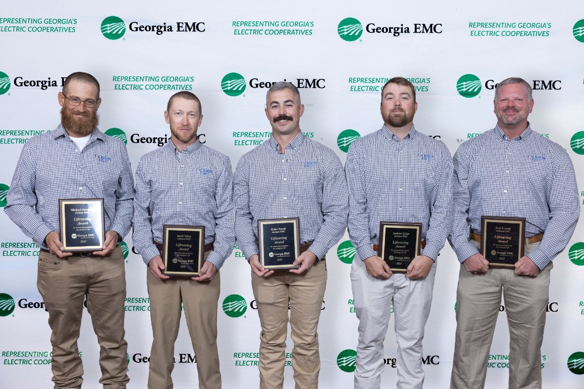 A potentially tragic incident turned into a story of heroism and hope, thanks to the quick thinking, extensive training and courageous actions of a group of Jackson EMC employees. Their extraordinary efforts were recognized with the prestigious Lifesaving Award by Georgia EMC during the state association’s recent annual meeting in Savannah.