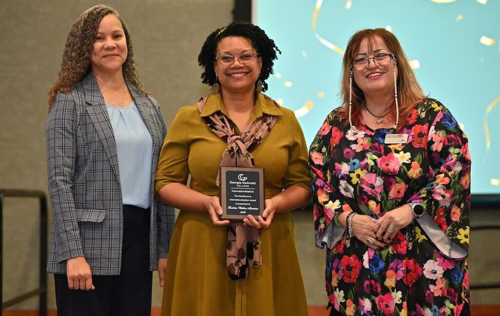 A highlight of the event came when the Internationalization office presented the college’s Award of Excellence in Internationalization to Dr. Kristina Watkins-Mormino, professor of French and associate dean of the School of Liberal Arts, for her outstanding contributions to global education at GGC.