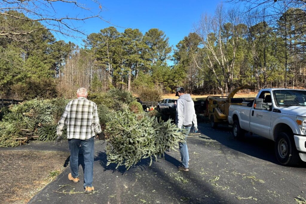 Suwanee resident chip trees at Sims Lake Park
