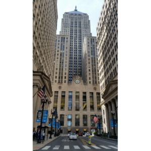 “Completed in 1930, CBOT is 44 stories high (605 feet tall), which made it the tallest building in Chicago, at least until 1965, when it was surpassed in height by the Chicago Civic Center. Since that time, Chicago’s skyline has continued to grow dramatically – so much so that CBOT is now ranked 42nd amongst the tallest in the city.